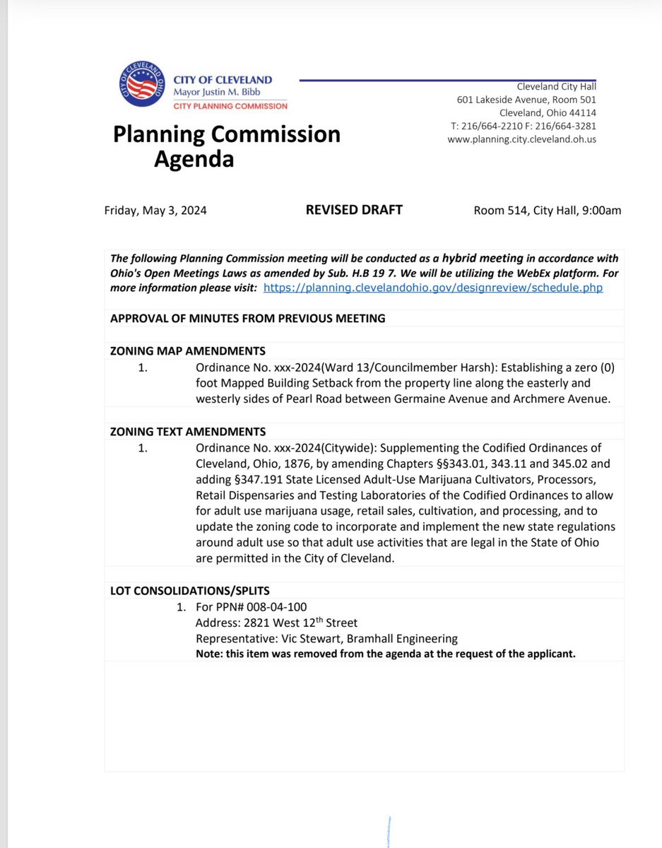 Find the meeting live streamed at: https://www.youtube.com/@ClevelandPlanningCommission/streams
